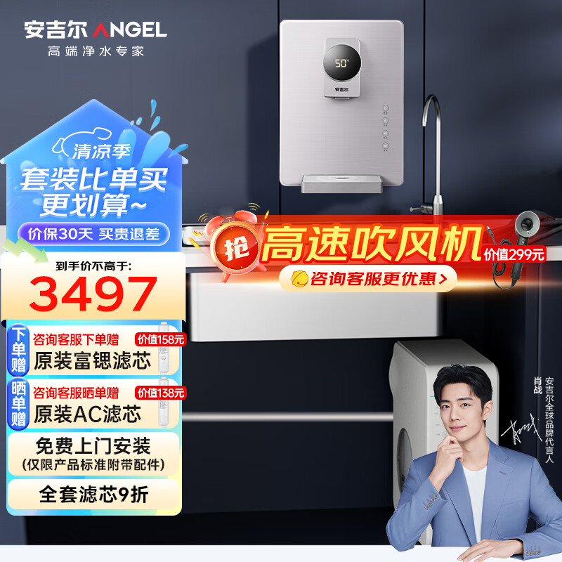 安吉尔家用净热套装 【魔方pro2900+管线机3312】5年RO反渗透厨下式直饮机1100G体验价格:3497.00元!