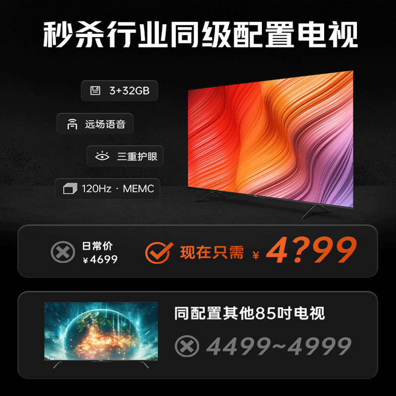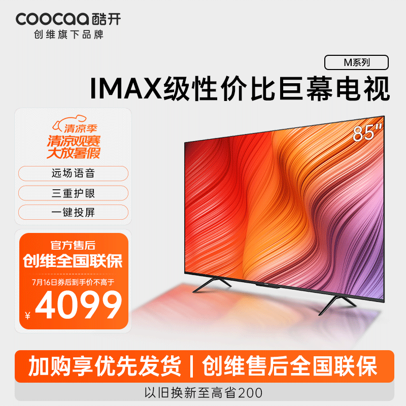 酷开(coocaa) 创维电视 M85 85英寸 游戏电视 120HZ·MEMC高刷 HDMI2.1 4K高清 3+32GB 投屏平板电视机 85P31 85英寸价格:4099.00元!