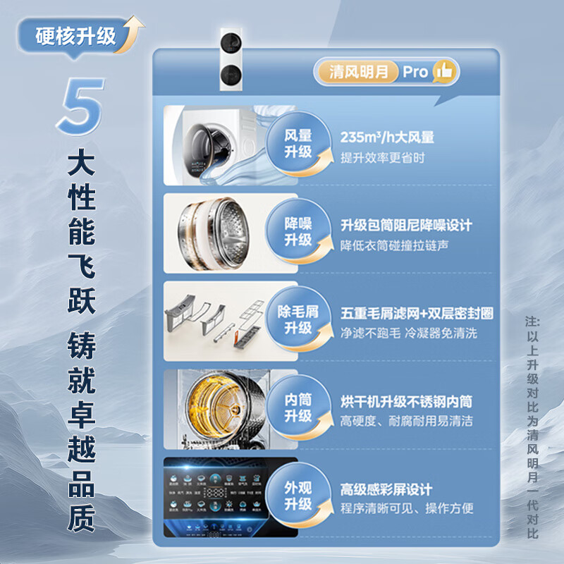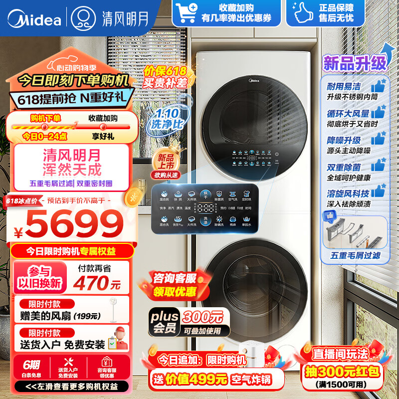 美的(Midea)清风明月洗烘套装洗烘护一体式超薄全嵌 除毛絮必备 10公斤全自动变频滚筒+热泵烘干 MGH20VE5PRO价格:5699.00元!