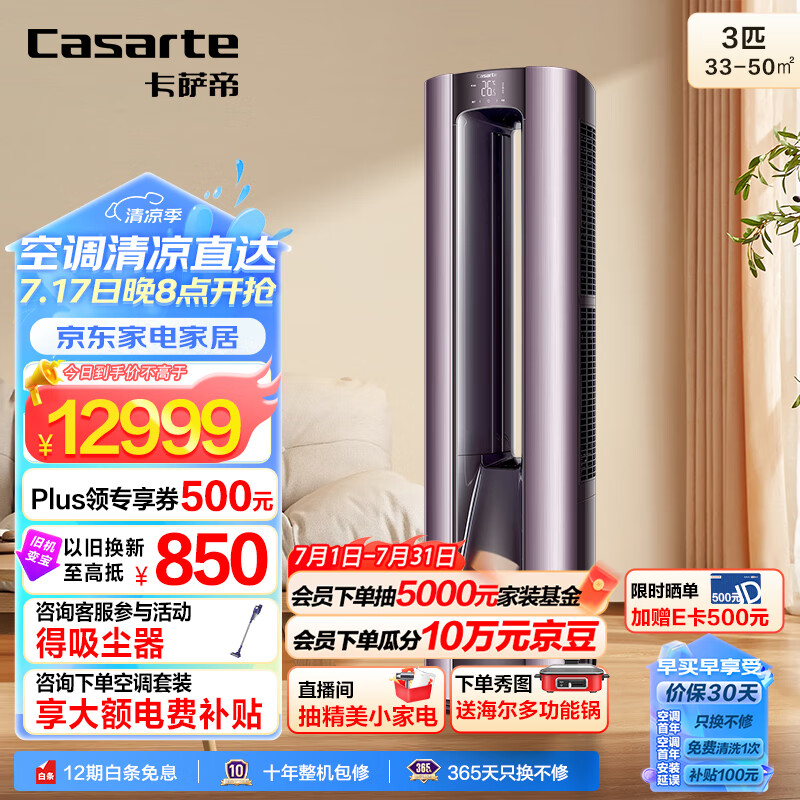 卡萨帝(Casarte)3匹 双子极光 新一级变频 双塔软风 母婴健康 冷暖立柜式空调柜机CAP721UEA(81)U1以旧换新价格:12986.00元!