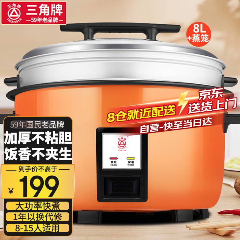 三角牌(Triangle) 电饭煲大容量10人以上电饭锅食堂工厂商用大电饭煲酒店饭店大型超大 8升+蒸笼 8-15人用价格:209.00元!