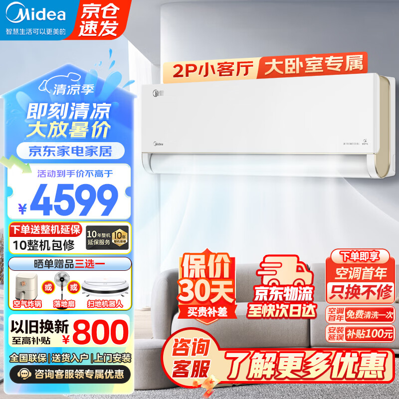 美的(Midea)空调 大2匹旋耀 壁挂式 客厅商铺 冷暖挂机 京东小家智能生态空调 KFR-50GW/N8MXA3价格:4599.00元!