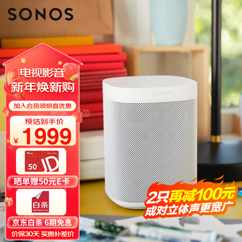 SonOS One 有源音箱 WIFI无线 多房间互联 环绕可组合 家庭影院 迷你音响 智能家用桌面客厅卧室书架 白价格:1999.00元!