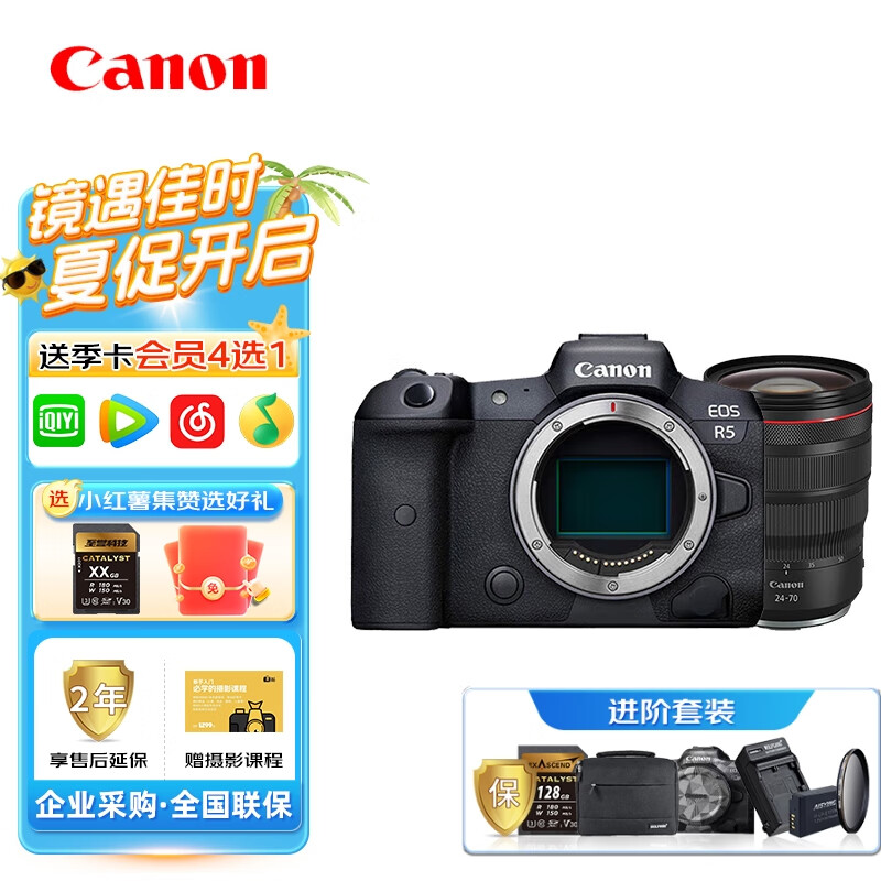 佳能(Canon)EOS R5 +RF 24-70mm F2.8 USM镜头 扫街旅拍套装价格:40999.00元!