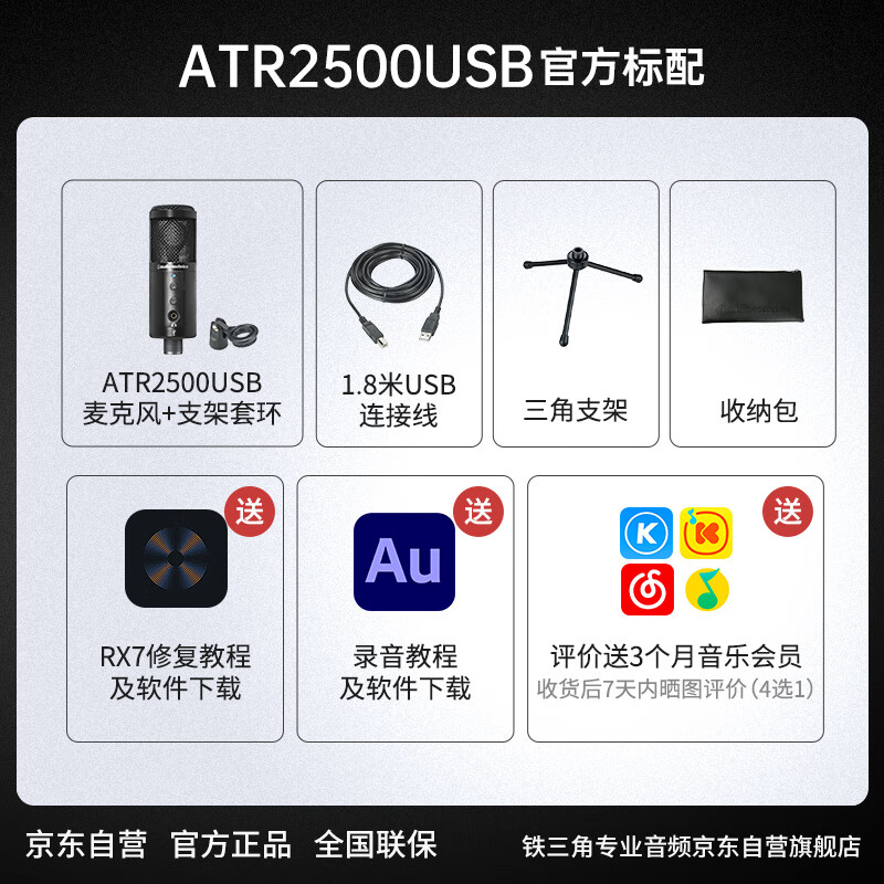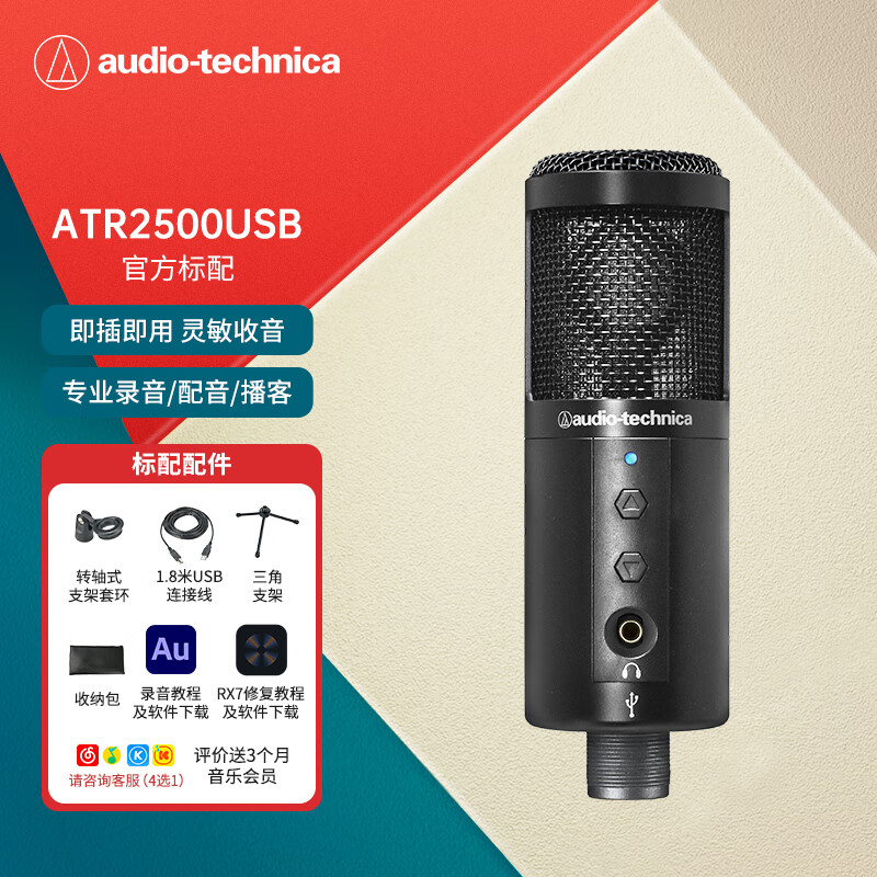 铁三角ATR2500USB 指向性电容USB麦克风电脑轻松连接直播K歌录音配音专业话筒价格:599.00元!
