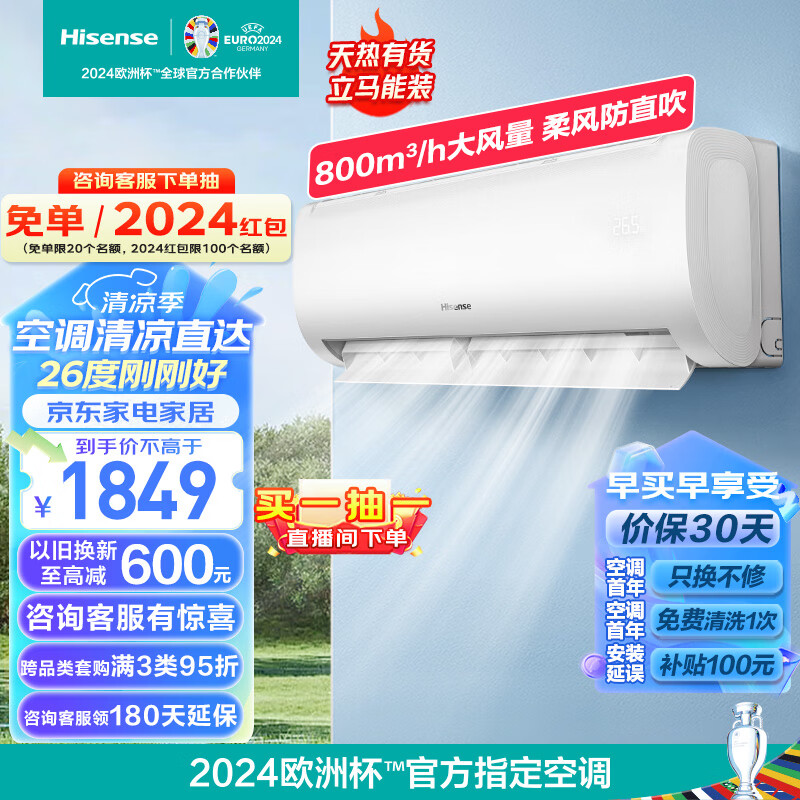 海信(Hisense)大1匹 速冷热 新一级能效 大风量速冷暖 APP智能变频防直吹壁挂式卧室空调挂机 KFR-26GW/E370-X1价格:1849.00元!