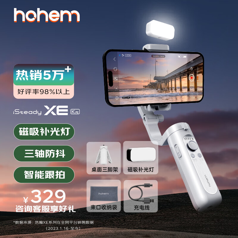 浩瀚(hohem)XE kit 手机稳定器 手机云台 小巧可折叠三轴云台稳定器 直播vlog神器 智能手持云台价格:369.00元!