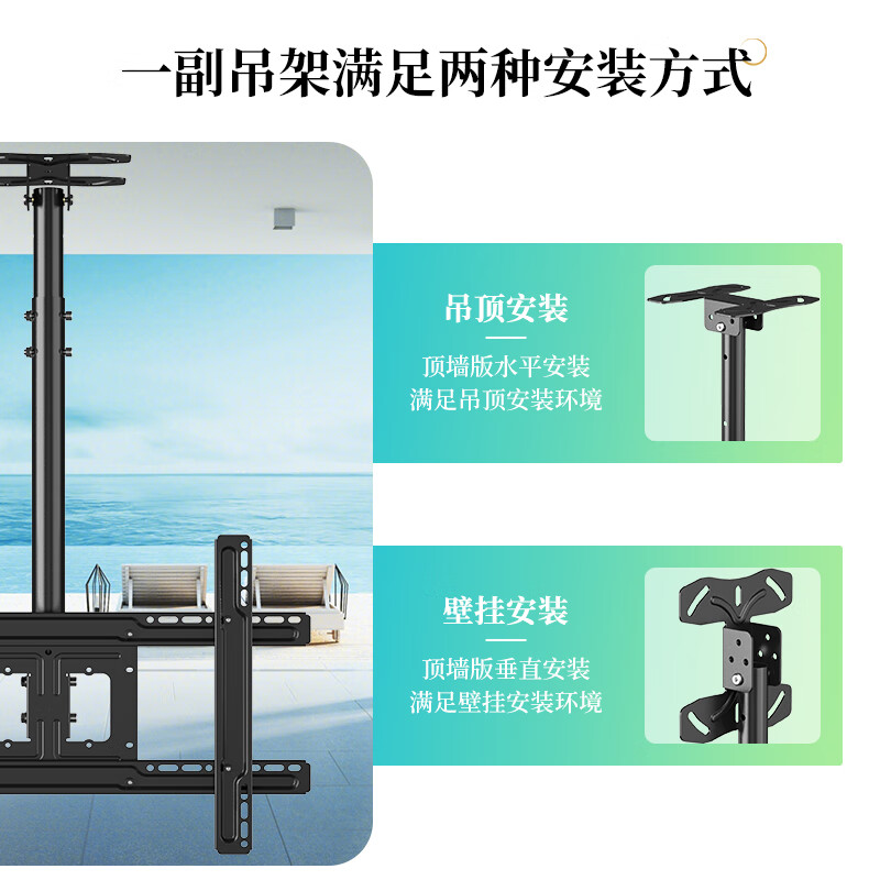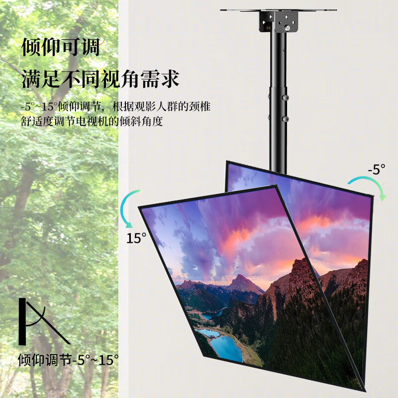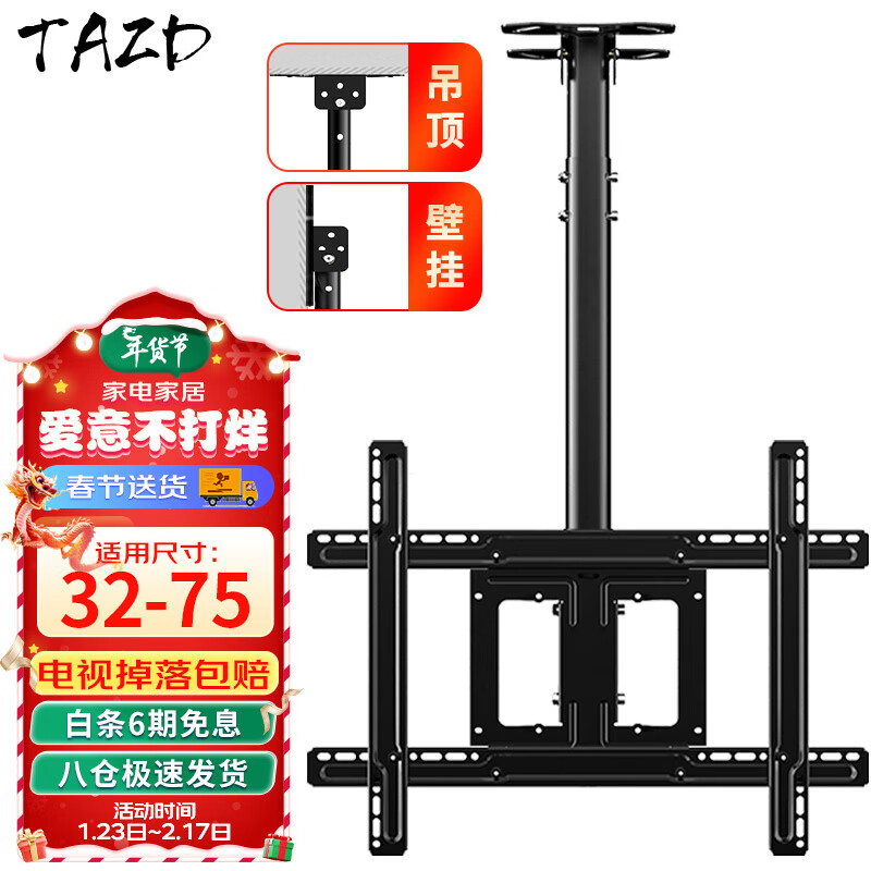 TAZD 电视吊架电视机壁挂旋转支架360度旋转吊架电视吊顶架天花板电视吊装挂架海信创维华为TCL 【32-75英寸】1.5米吊架角度可调旋转伸缩价格:106.00元!