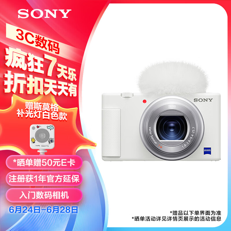 索尼(SONY)ZV-1 数码相机 美肤拍摄/强悍对焦/学生入门/Vlog/4K视频 ZV1 白色价格:4299.00元!