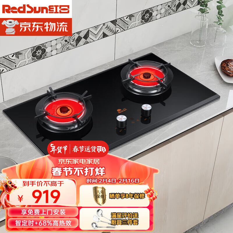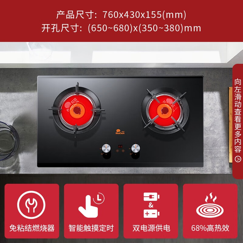 红日(RedSun)红外线燃气灶 天然气灶 智能触摸定时双电源 一级能效 防爆钢化玻璃 JZT-EM608B(天然气)价格:919.00元!