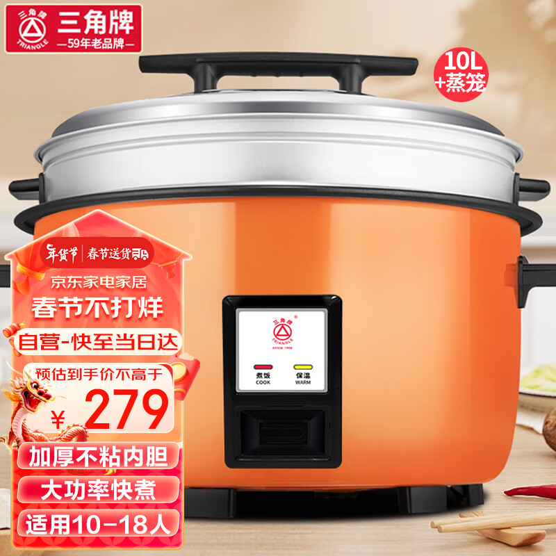 三角牌(Triangle) 电饭煲大容量10人以上电饭锅食堂工厂商用大电饭煲酒店饭店大型超大10升+蒸笼 10-18人用价格:289.00元!