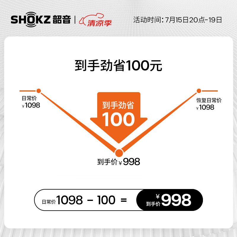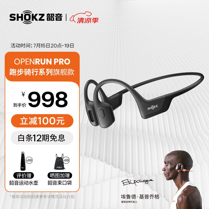 韶音(SHOKZ)OpenRun Pro骨传导蓝牙无线开放式耳机耳麦 不入耳式运动高音质 低频增强S810 骑士黑价格:998.00元!
