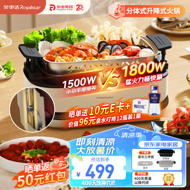 荣事达(Royalstar)升降电火锅自动6L火锅锅电锅双层分体式多功能锅家用涮烤火锅锅具RHG-SJ60E【一键升降】价格:499.00元!
