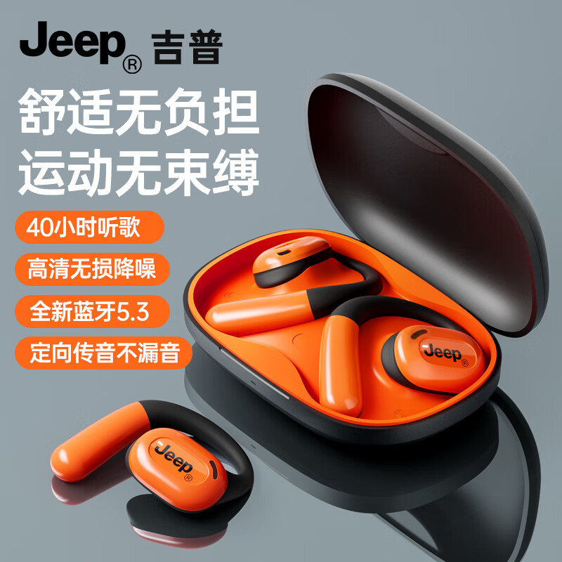 Jeep吉普【美国户外品牌】蓝牙耳机挂耳式开放式真无线不入耳运动跑步通话降噪骨传导概念定向传音价格:299.00元!