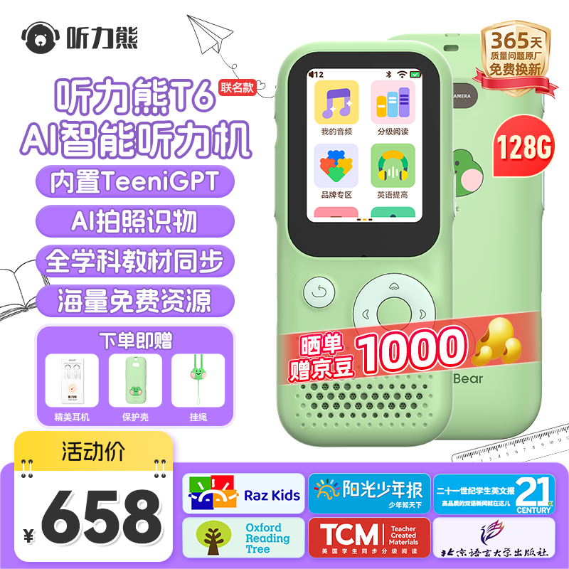 听力熊T6听力学习机复读机英语背单词神器小学初中高中口袋随身听力宝磨耳朵儿童礼物好学多蛙里尼128G价格:798.00元!