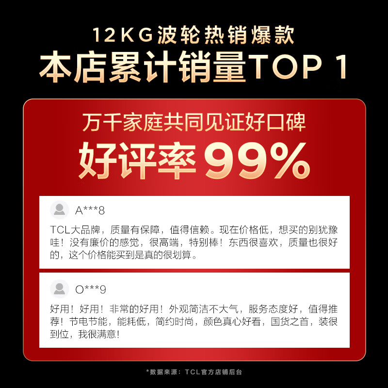 TCL 12KG超大容量全家桶T5 深层除螨 全景视窗 洗衣机全自动家用 以旧换新 宿舍租房神器 B120T5价格:1699.00元!