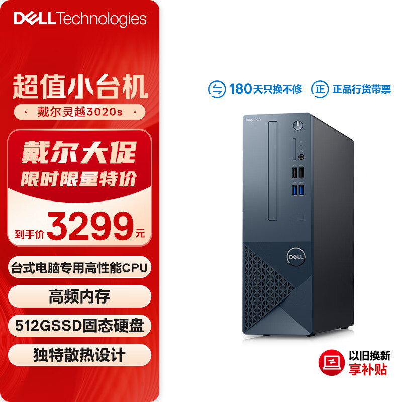 戴尔(DELL)灵越3020S 台式电脑主机 (酷睿13代i5-13400 8G 512GSSD)单主机 高性能CPU价格:3299.00元!