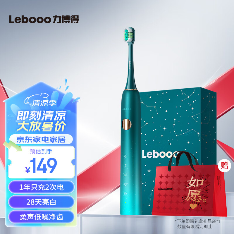力博得(Lebooo)电动牙刷智能声波高频低噪 成人情侣款生日节日礼物送男友/女友 星空礼盒 星芒 星辰绿价格:149.00元!