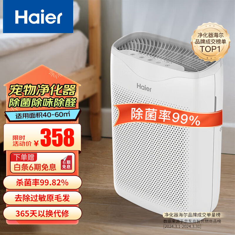 海尔(Haier)空气净化器除甲醛除雾霾除烟味母婴家用除灰尘杀菌KJ200F-M900A价格:599.00元!
