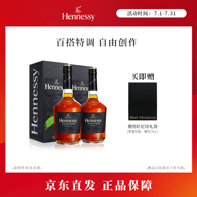 轩尼诗(Hennessy)新点 干邑白兰地 法国进口洋酒双支装礼盒 700ml*2价格:599.00元!