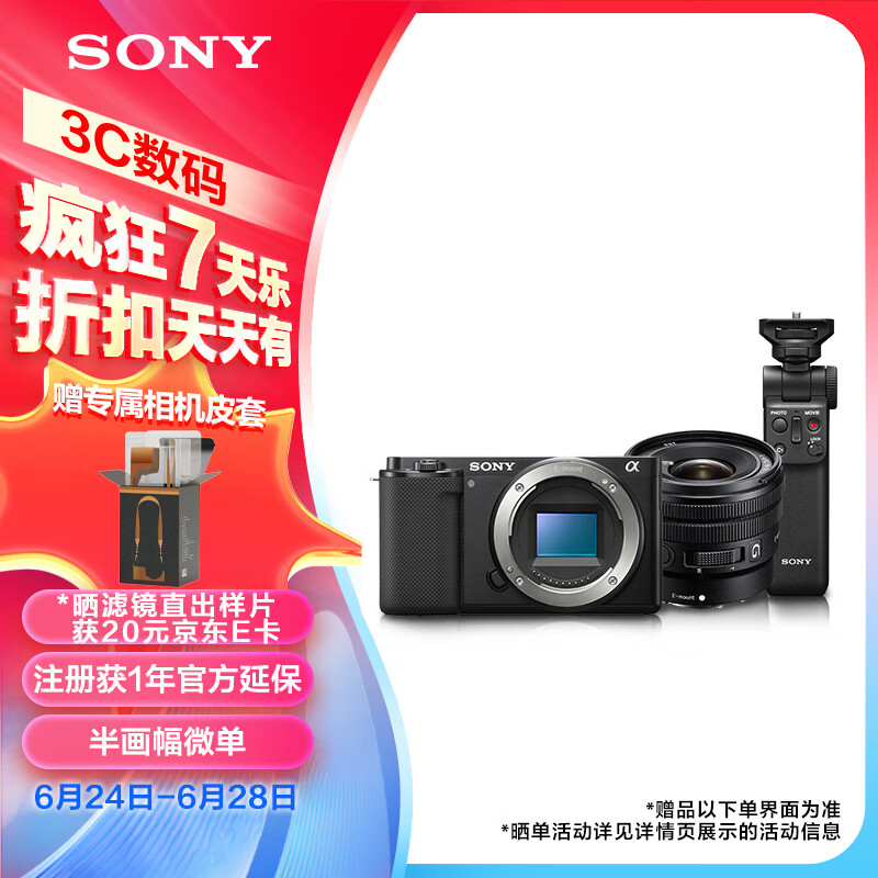 索尼(SONY)ZV-E10+SELP1020G 广角镜头+多功能手柄 半画幅微单相机 美肤拍照 颜值机身 精准对焦 黑色价格:9599.00元!