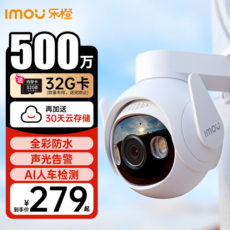 乐橙 监控摄像头室外 TS6-500万高清 商用家用户外室外无线监控器360度无死角带夜视全彩防水 声光告警价格:279.00元!