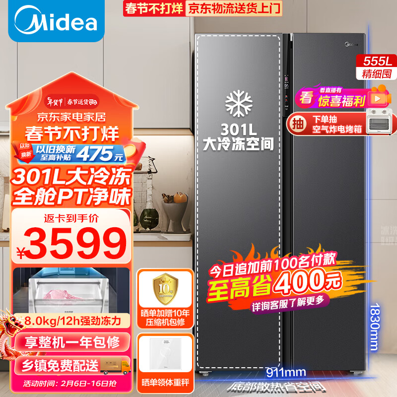 美的(Midea)555升超大冷冻空间双变频一级能效对开门双开门智能家用电冰箱节能风冷无霜超薄可嵌入MR-582WKPZE价格:4399.00元!