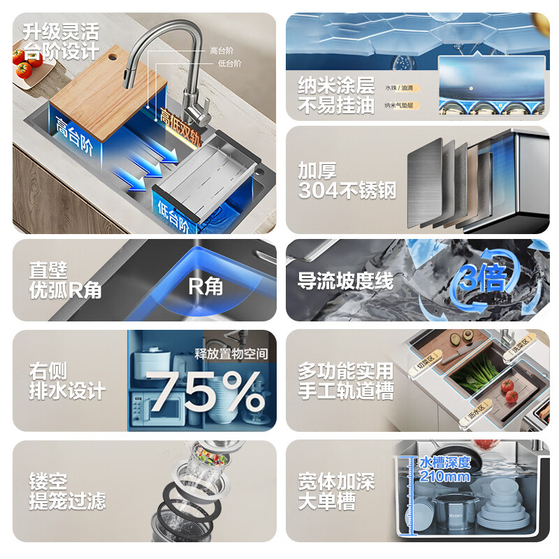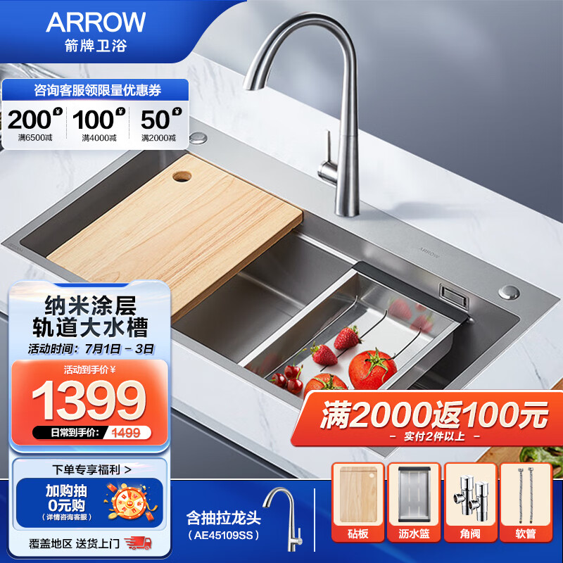 箭牌(ARROW)304不锈钢加厚轨道大单槽厨房洗碗洗菜盆AE5578424G31-NC纳米银价格:1479.00元!