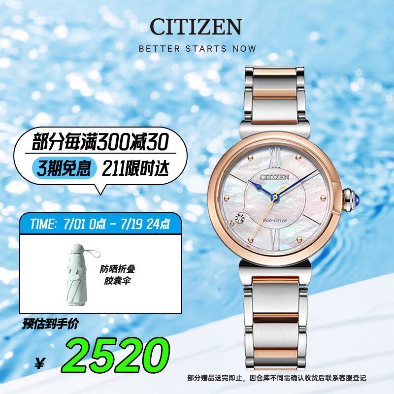 西铁城(CITIZEN)手表女日韩表光动能贝母表盘精致钢带时尚送长辈礼物EM1074-82D价格:2800.00元!