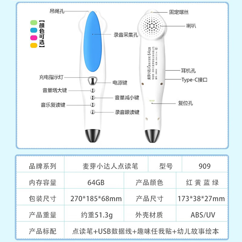麦芽小达人(MaiYa)点读笔64G幼儿早教机生日礼物可点读DK博物大百科RAZ等书籍单笔价格:399.00元!