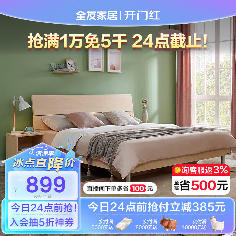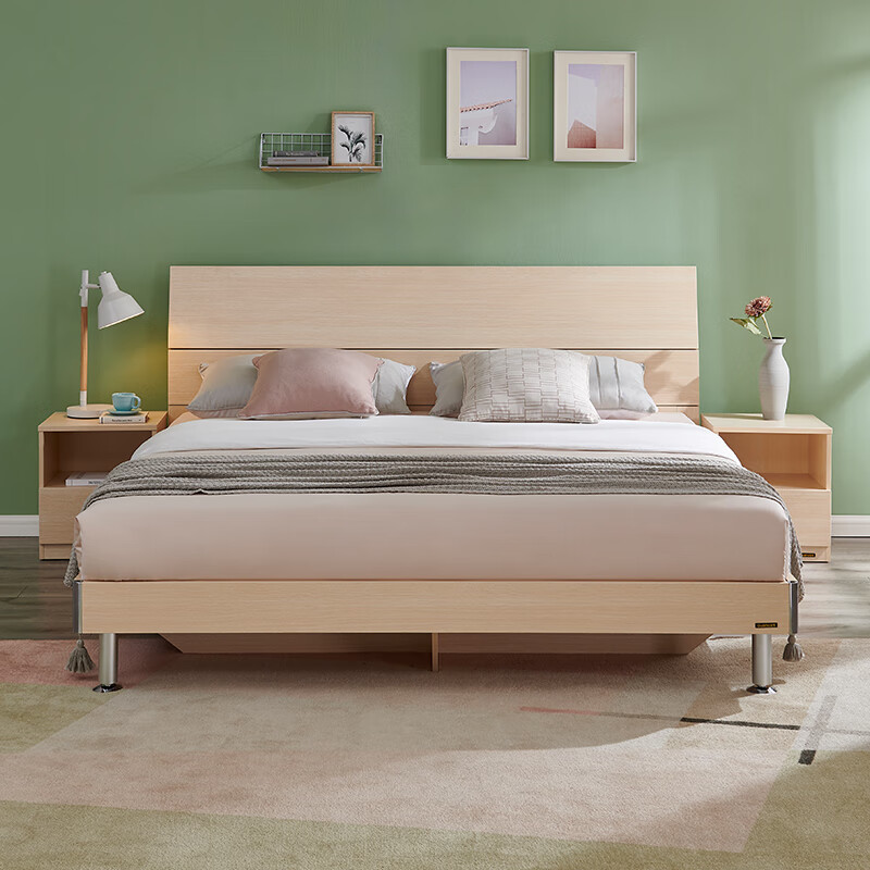 全友家居 双人床家用高脚床板式床现代简约主卧室床1.8x2米家具106302价格:1284.29元!