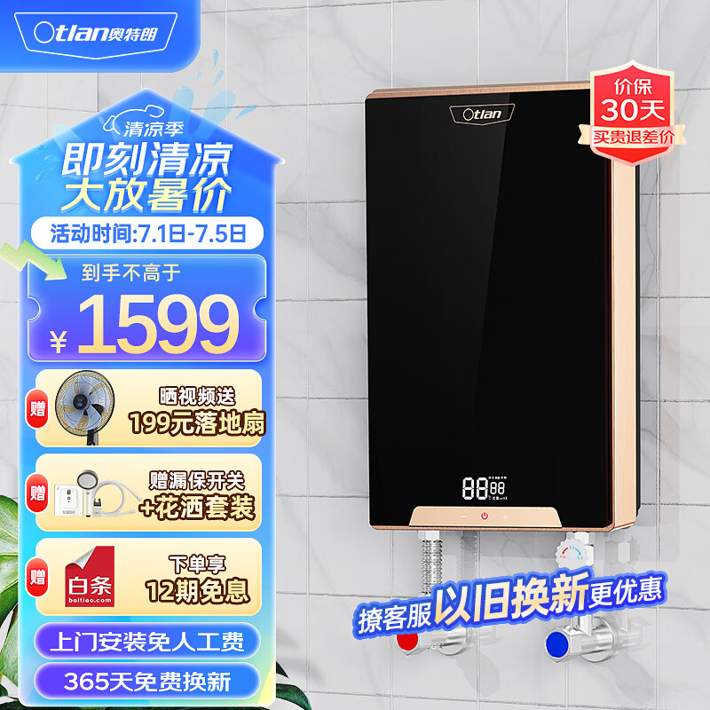 奥特朗(otlan) F16H-Z85A 即热式电热水器小厨宝 家用小型速热免储水 快热式恒温淋浴机【0-8.5KW智能变频】价格:1599.00元!
