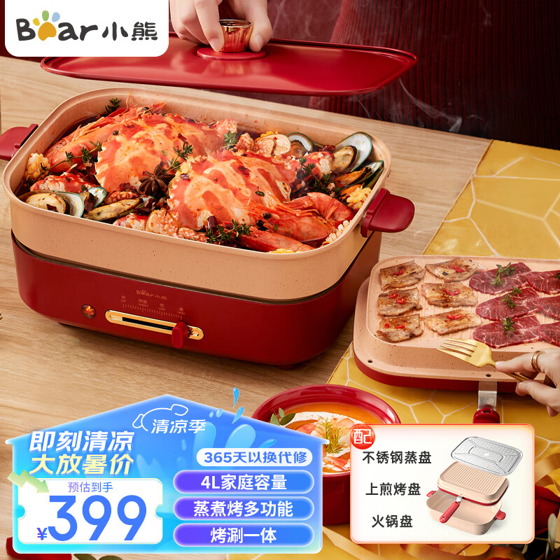 小熊(Bear)多功能锅 料理锅 家宴锅火锅专用锅多用途锅烤肉锅 家用电火锅蒸煮煎烤涮炒烙一体网红款 C18N2 4L价格:399.00元!