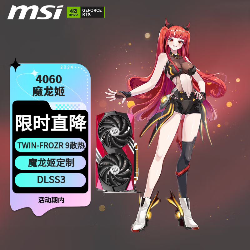 微星(MSI)魔龙 GeForce RTX 4060 GAMING X 8G MLG 电竞游戏设计智能学习电脑独立显卡价格:2699.00元!