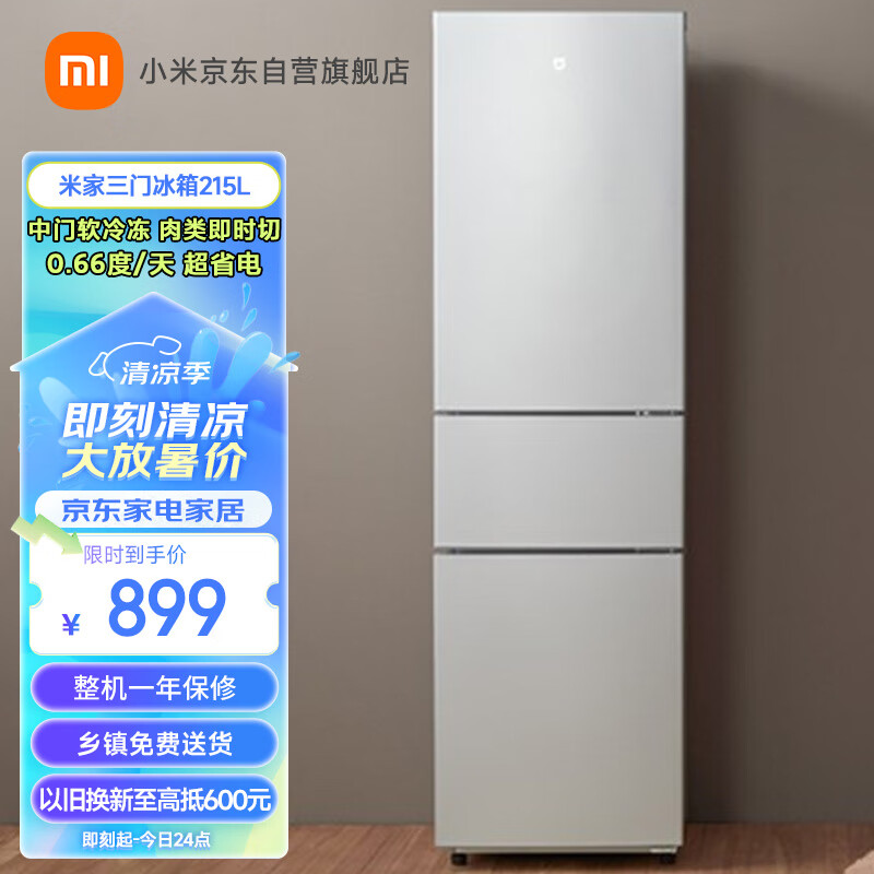 米家小米出品215升 三门小型家用电冰箱 三门三温节能安静运行冷冻冷藏 租房宿舍 BCD-215MDMJ05价格:899.00元!