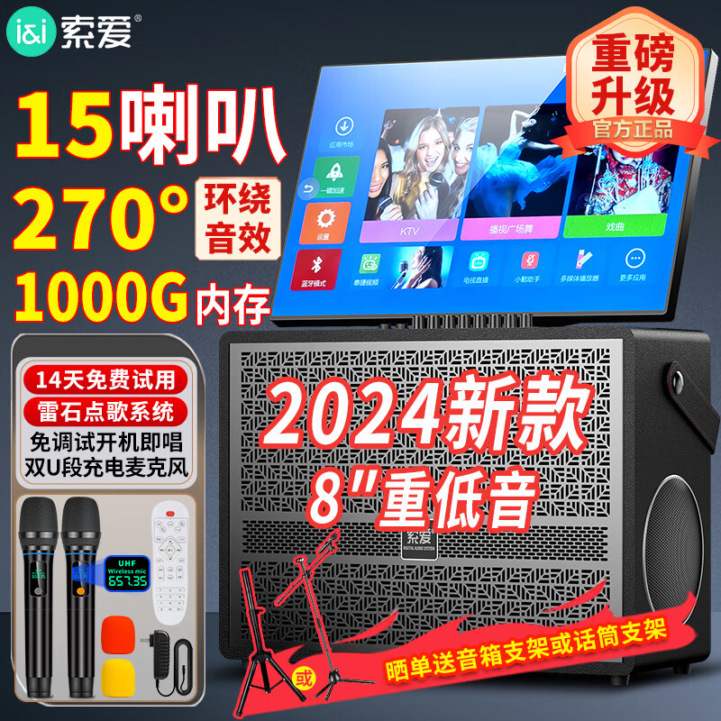 索爱(soaiy)K152家庭ktv音箱套装户外广场舞音响带显示屏家用移动k歌音箱点歌机触摸屏一体机卡拉ok机1000G价格:2980.00元!