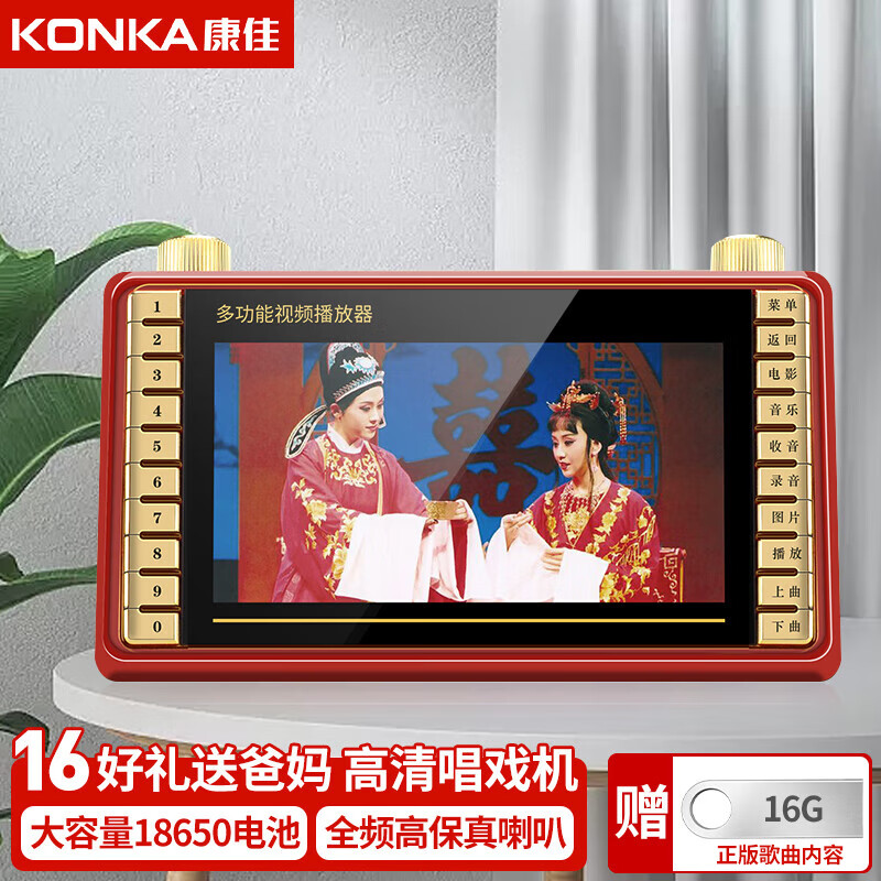 康佳(KONKA)老人唱戏机老年人看戏听戏机广场舞视频机音响带显示屏收音机视频播放器移动小电视价格:229.00元!