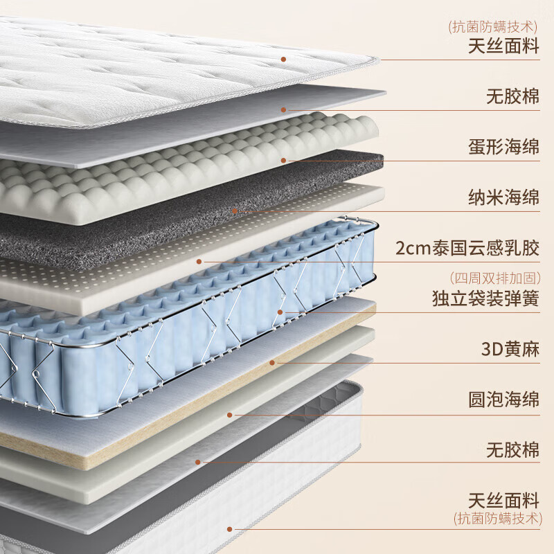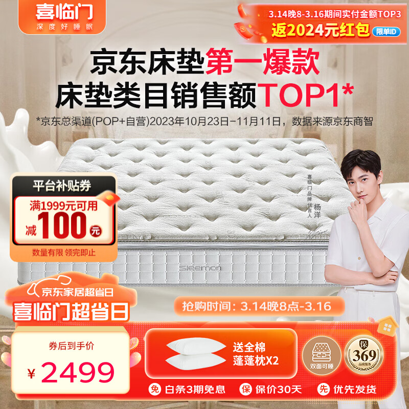 喜临门床垫 2CM乳胶黄麻独立袋装弹簧床垫软硬席梦思 白骑士plus1.8x2米价格:2599.00元!
