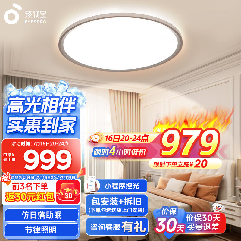 孩视宝卧室护眼吸顶灯全光谱客厅书房儿童房防蓝光频闪led灯具AH34-T价格:1699.00元!