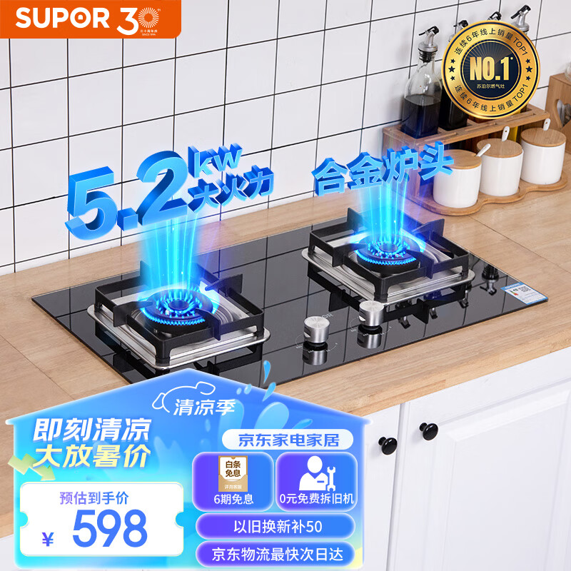 苏泊尔(SUPOR)家用燃气灶 双灶具5.2kW火力 63%热效率 宽域控火可拆卸炉头 聚能锅支架燃气灶具DB27液化气价格:598.00元!