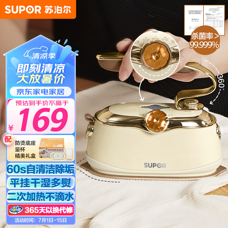 苏泊尔(SUPOR)挂烫机家用手持熨烫机蒸汽熨斗旅游出差便携式小型电熨斗自清洁除菌熨衣机礼品礼物EGH-906A价格:169.00元!