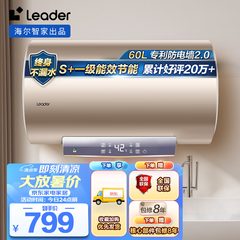海尔智家出品Leader 60升电热水器家用储水式 速热大水量一级能效节能 LEC6001-LD5金【以旧换新】价格:799.00元!