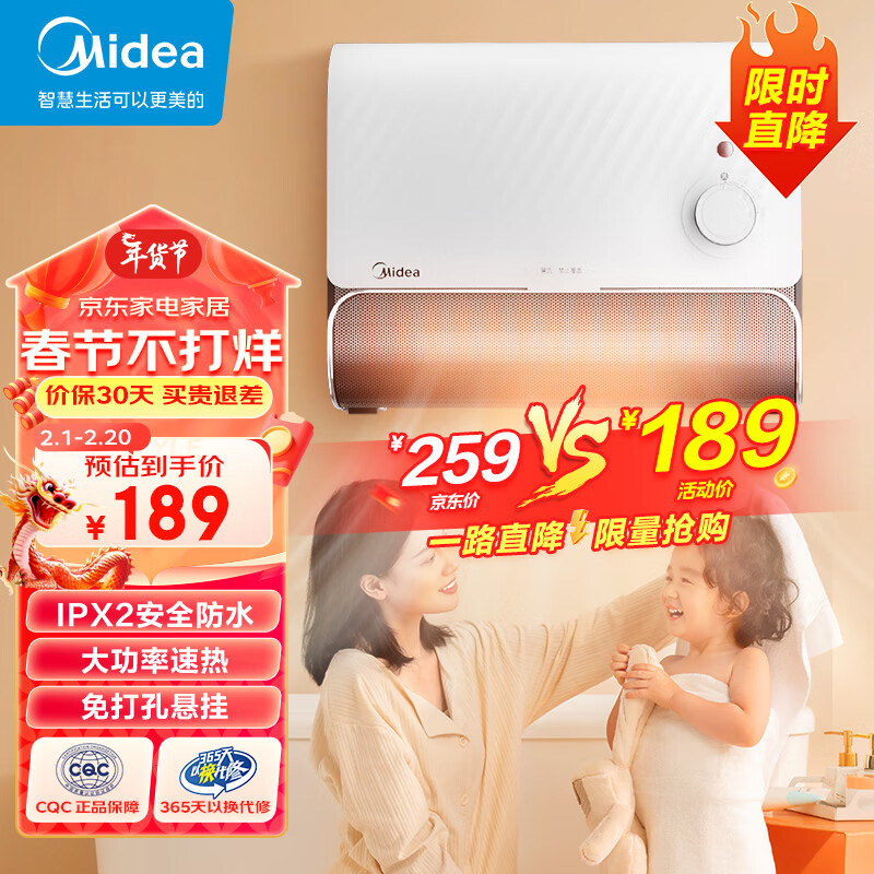 美的【随心壁挂】暖风机/取暖器家用/电暖气/电暖器/加热风机/小太阳/电暖器/暖风浴室壁挂浴霸HFU20YA价格:210.00元!