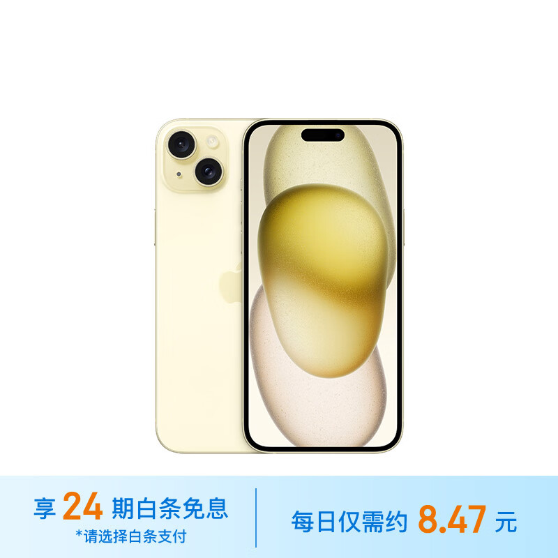 Apple/苹果【24期免息】iPhone 15 Plus (A3096) 128GB 黄色支持移动联通电信5G 双卡双待手机价格:6299.00元!