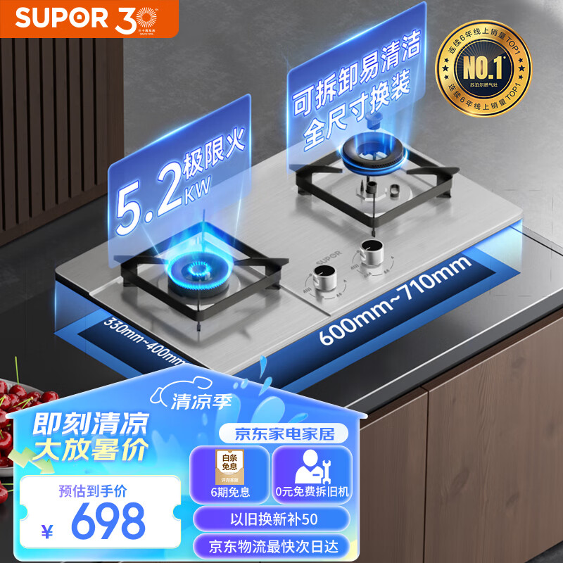 苏泊尔(SUPOR)燃气灶双灶家用 液化气双灶具5.2kW升级猛火 易洁耐用不锈钢面板 台嵌两用灶具 DS37液价格:698.00元!