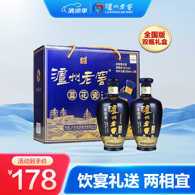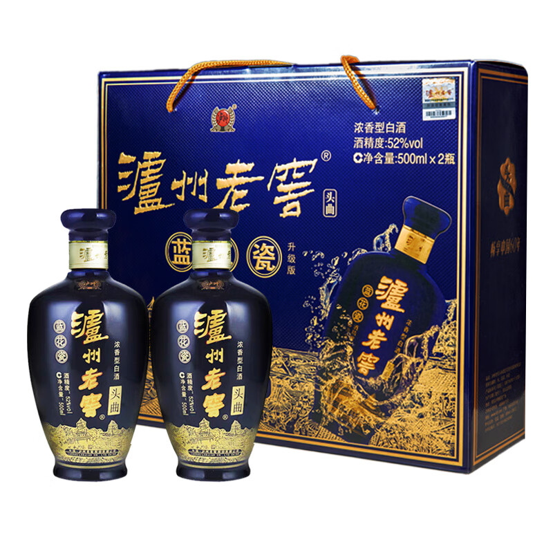 泸州老窖蓝花瓷 头曲 礼盒 浓香型白酒 52度升级版 500ml*2价格:178.00元!