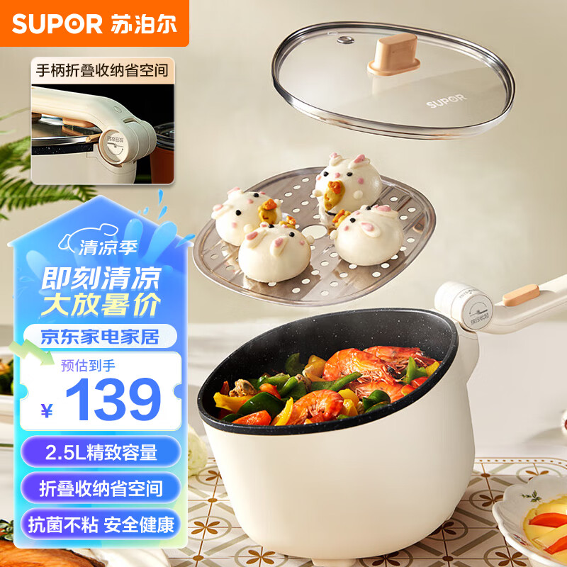 苏泊尔(SUPOR)电炒锅 便携式电煮锅电热锅 多功能宿舍泡面锅电火锅 旅行出差折叠式把手2.5L多用途锅CJ20A819价格:139.00元!