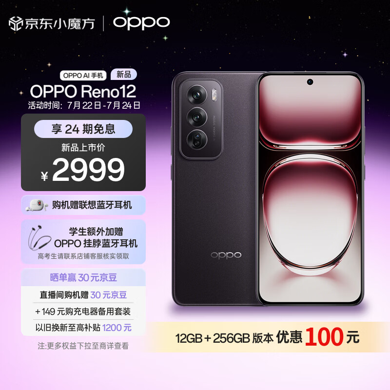OPPO Reno12 超美小直屏 安卓Live图 天玑旗舰芯 12GB+512GB 乌木黑 游戏智能 新款 AI影像5G拍照手机价格:2999.00元!