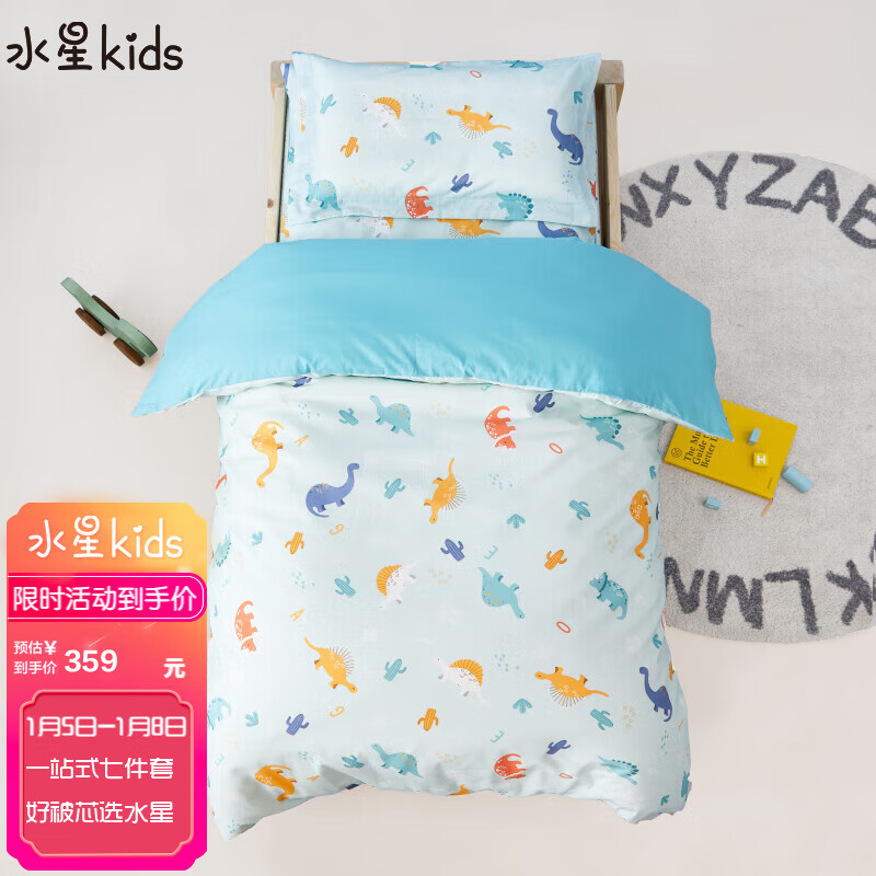 水星儿童(MERCURY Kids)水星家纺 幼儿园抗菌七件套(湖水绿/远古龙)0.6-1m床 婴幼儿A类价格:519.00元!