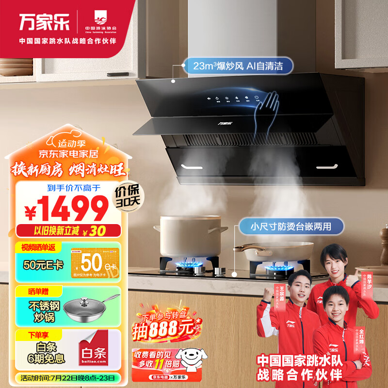 万家乐 抽油烟机 侧吸式烟灶套装自清洗 23立方大吸力挥手智控 5.0kw燃气灶烟机灶具套装AJ4+AY4天然气价格:1699.00元!